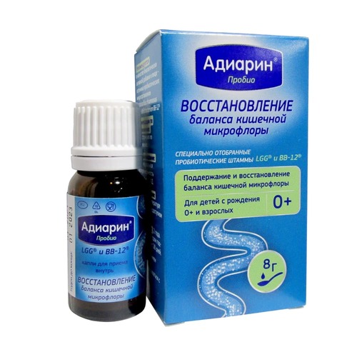 Адиарин® Пробио рекомендуется в качестве биологически активной добавки к пище – источника пробиотических микроорганизмов Lactobacillus rhamnosus LGG® и Bifidobacterium BB-12®: