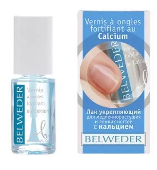 Бельведер лак д/медленнораст. и ломких ногтей укрепл. с кальцием фл. 8мл Латвия. БЕЛЬВЕДЕР лак для ногтей укрепляющий с кальцием для медленнорастущих/ломких помогает устранить хрупкость и ломкость особенно тонких, слабых и медленно растущих ногтей. Лак обеспечивает дополнительную механическую защиту и защиту от окрашивания. Придает ногтям ухоженный, аккуратный вид.