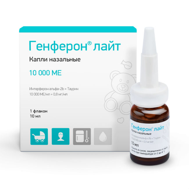 При первых признаках заболевания Генферон® лайт закапывают в нос в течение 5 дней.